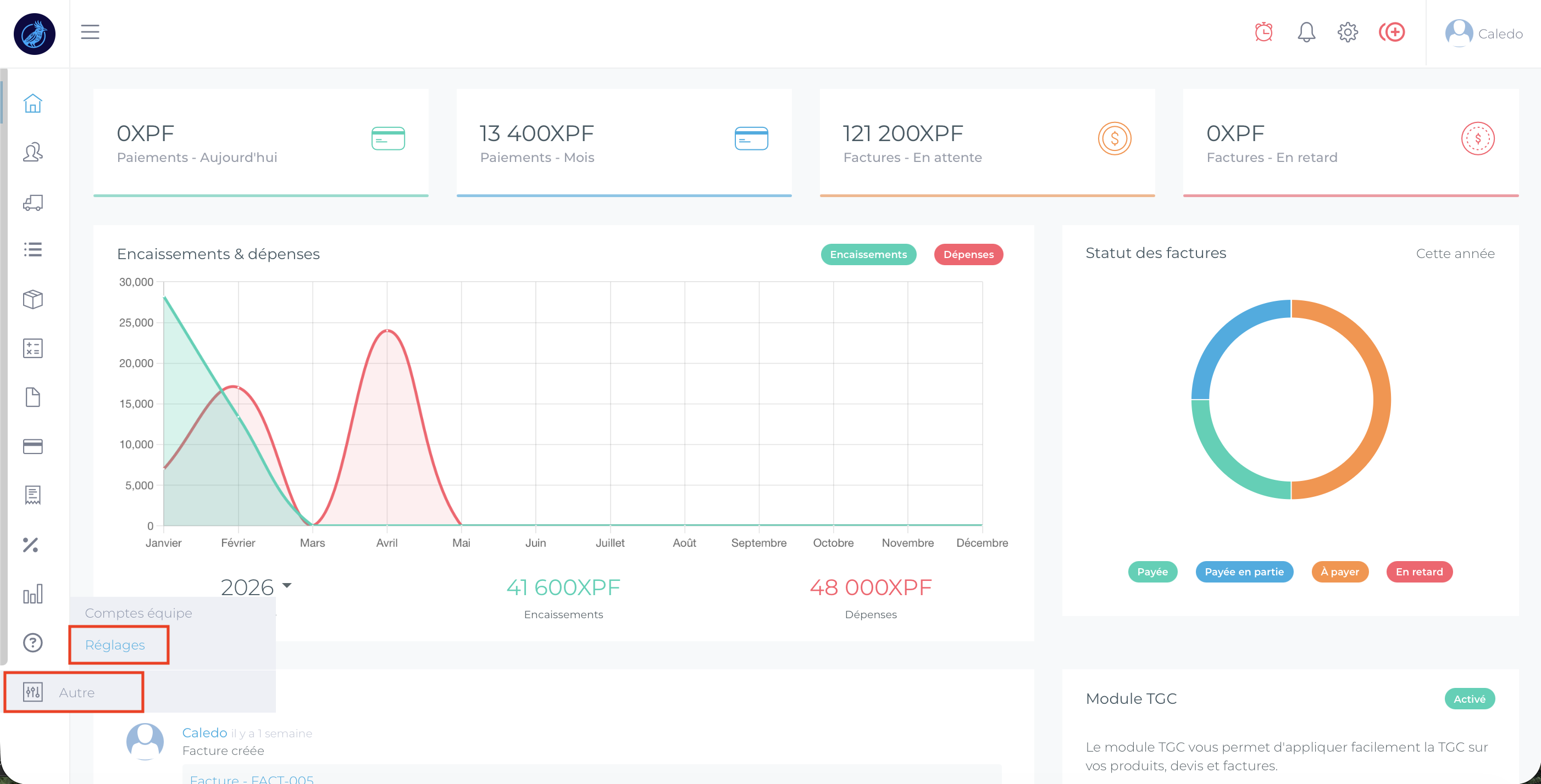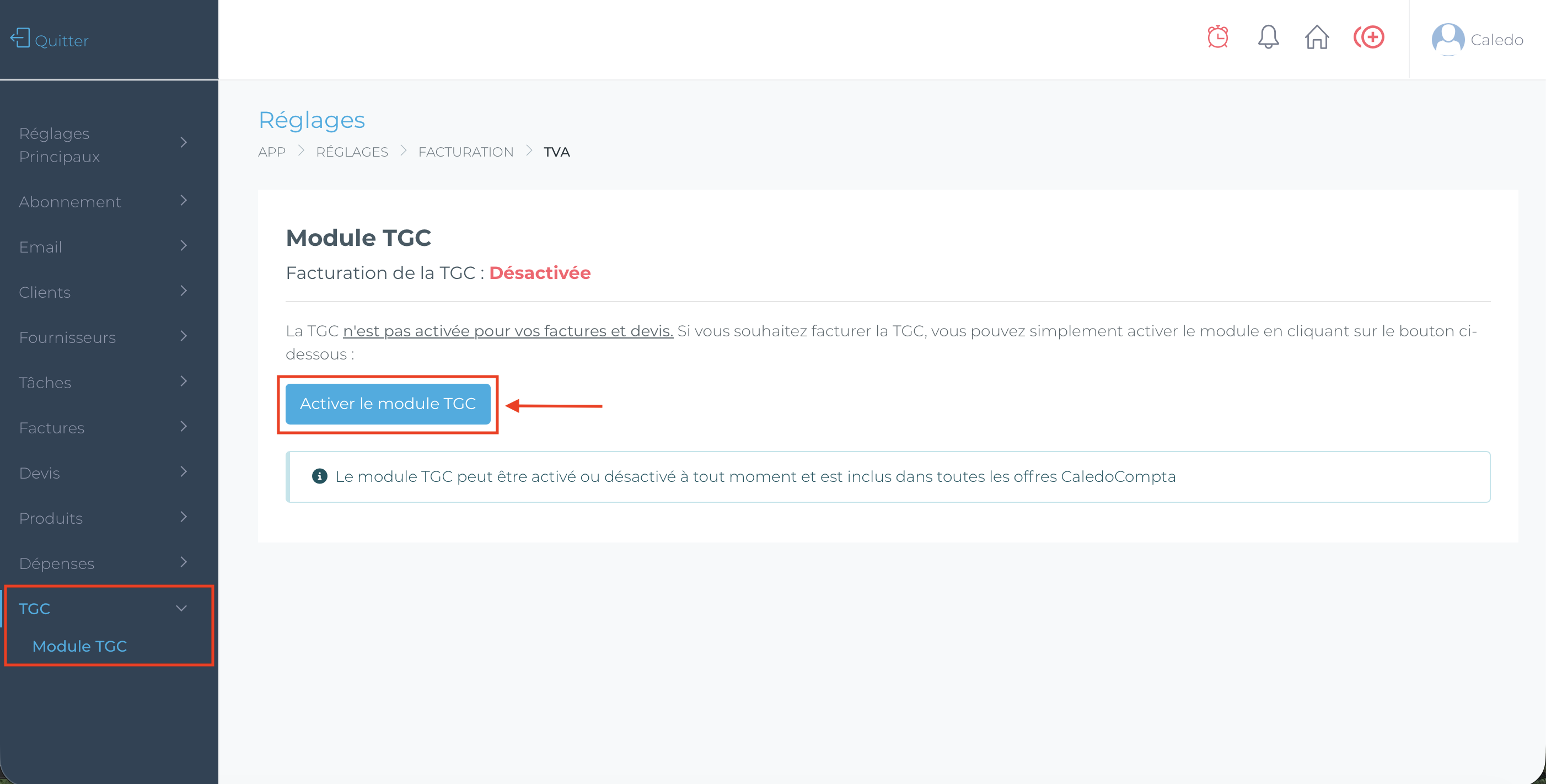 Vous trouverez ici toutes les informations pour activer la TGC sur votre compte Caledo Compta :